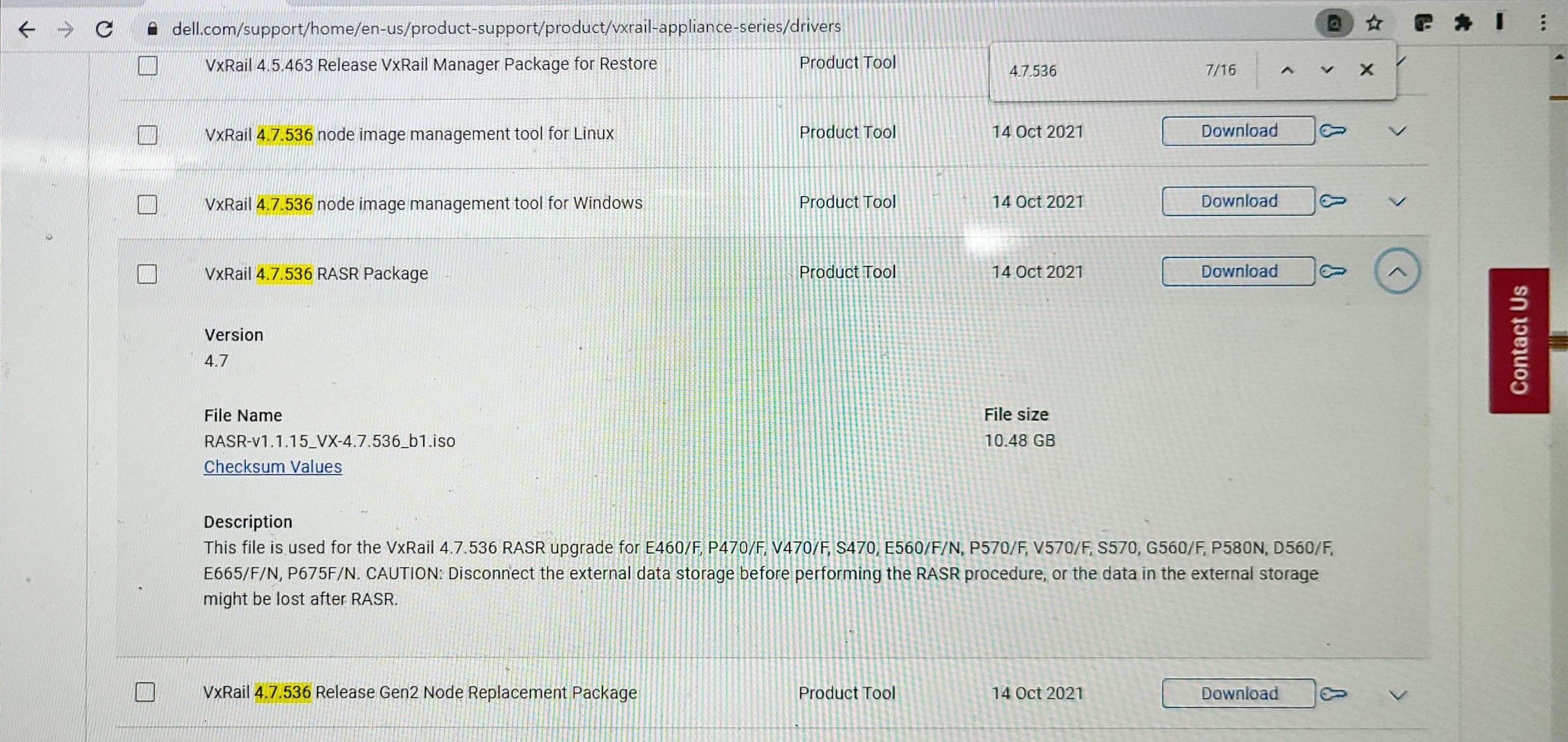 - Dell Product Support site에서 원하는 RASR버전 package file 다운로드