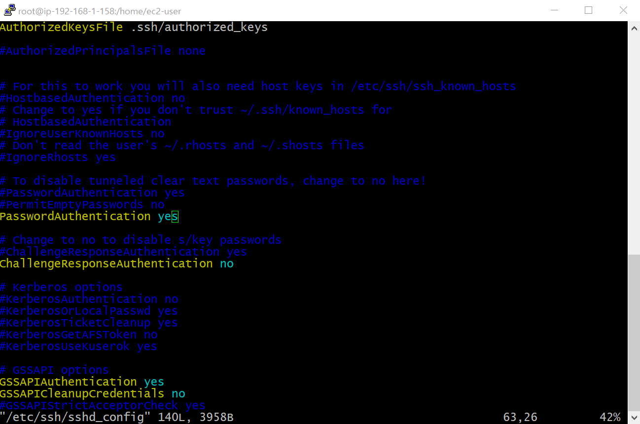 # vi .ssh/authorized_keys → puttygen에서 생성된 authorized_key 복사 후 파일에 붙여넣어 저장