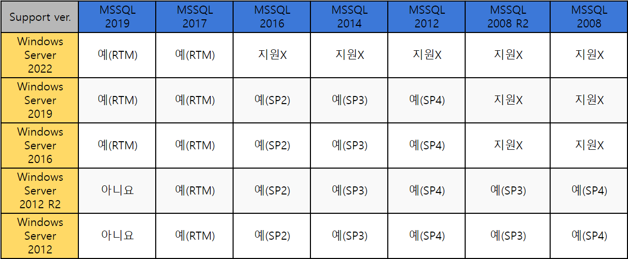 📃Windows Server와 MSSQL 버전간 호환성 비교표