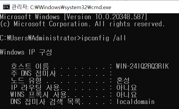 * ํ์ฌ ํ ์คํธ์๋ฒ์ Hostname์ WIN-24IQ2RQ3RIK ๋ก ๋ณด์ฌ์ง๋๋ค.
