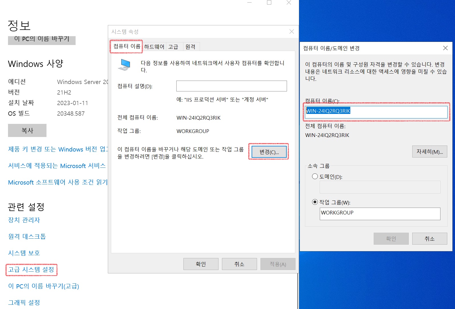 ์์ฑ > ์ปดํจํฐ ์ด๋ฆ > ๋ณ๊ฒฝ
