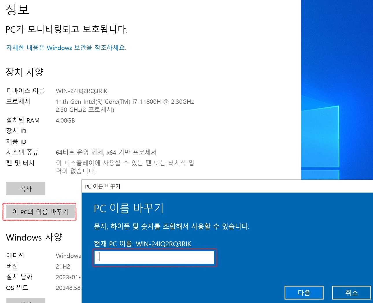 > ์ ๋ณด > ์ด PC์ ์ด๋ฆ ๋ฐ๊พธ๊ธฐ