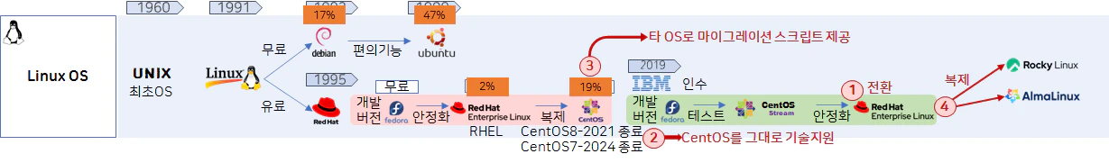 이에 따른 대안으로 RHEL의 무료 배포판형식으로 Rocky Linux 와 Almo Linux 가 나옴에 따라 앞으로는 해당 배포판들의 사용이 두드러질 것으로 예상됩니다.