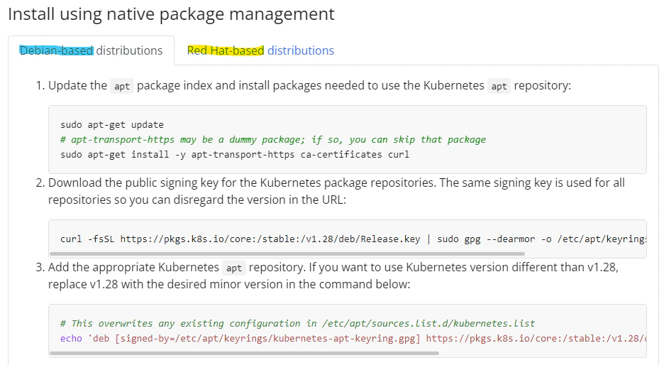 Linux OS는 여러 배포판을 제공하고 있고, 크게 데비안계열과 레드햇계열로 구분되어 쿠버네티스 설치 가이드에서도 2가지 계열에 따른 설치가이드를 제공합니다. (실습에서는 레드햇계열의 Rocky Linux를 사용 예정)